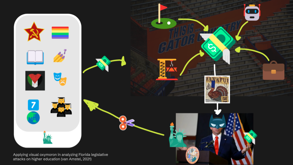 I use icons to understand the complexities of Florida’s policies, where student protests are silenced and people from minority groups—including socialists, communists, LGBTQ+ communities, Indigenous people, and citizens of the seven “countries of concern” like Iran, Russia, and Venezuela—face significant restrictions in academic research. The box we are in, striving for the future of super-development with generative AI and promising job prospects, also turns natural resources into tourism and golf courses. Yet, are we still grateful for that?