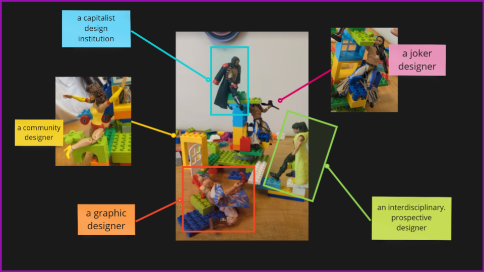 One research question that arises here is: how does diversity by design manifest in the state of Florida, with its neoliberal and racist policies? I engage with Lego serious play beyond individual stories and identities, focusing instead on the structures we inhabit. Within the studio, we are multiple designers of various expertise—graphic designers with cultural interests, prospective designers, community designers. Despite our best efforts, we still find ourselves within a capitalist design institution.