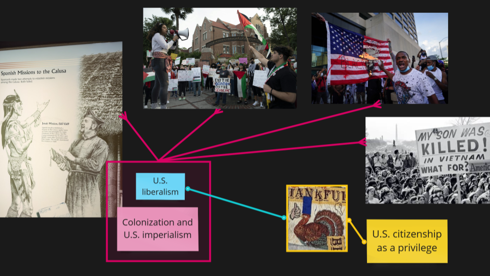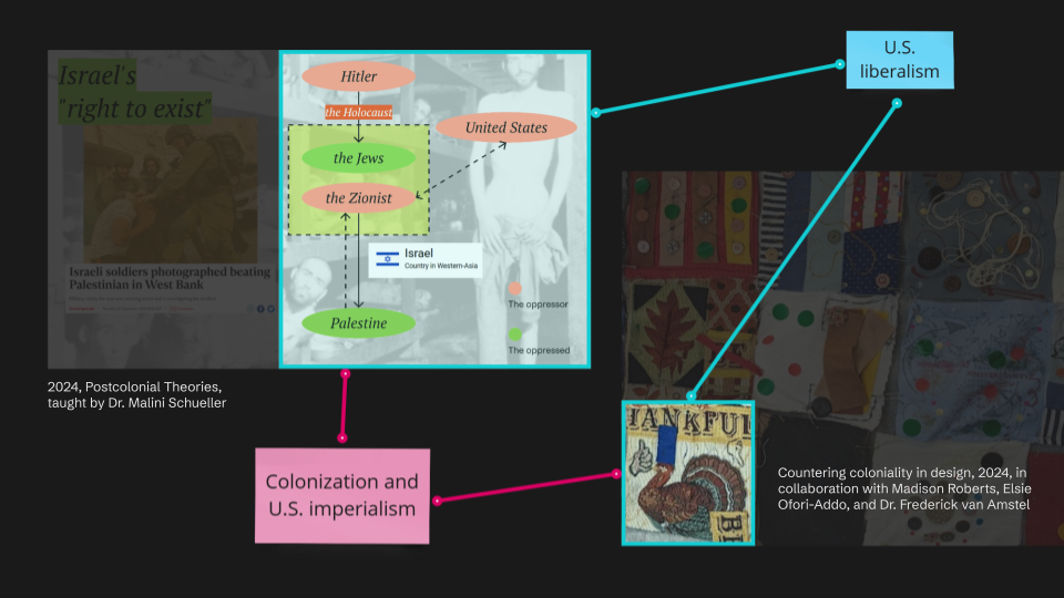 As I dug deeper, I began to understand that United States liberalism is closely linked to United States imperialism—the notion that the U.S. is the global dominant power, justified in intervening in the geopolitics of other nations. This intervention often comes under the guise of “helping,” as seen in the struggles between Israel and Palestine, where the U.S. has supported Israel’s establishment as a nation-state, leading to ongoing violence and genocide against Palestinians. This realization made me question whether I still needed to be grateful for United States citizenship and education. It created a personal crisis.