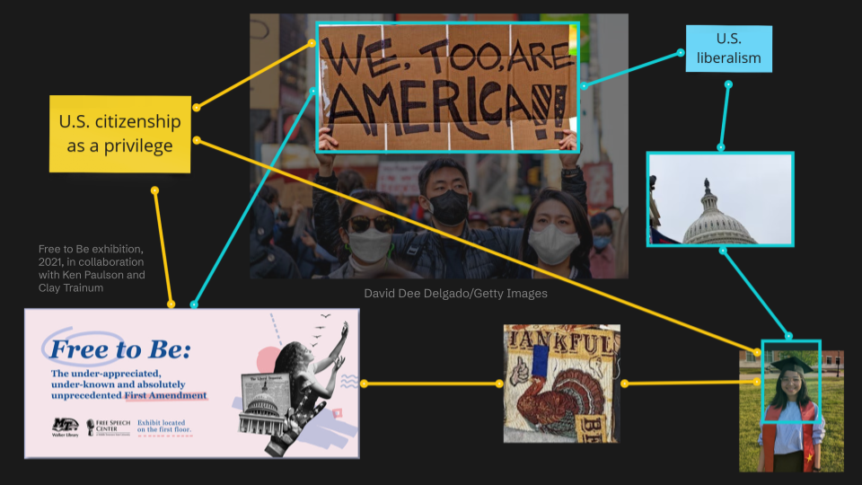 This was during 2020, a time when the United States was in the throes of a presidential election, the COVID-19 pandemic, and intensified foreign relations with China. Anti-Asian sentiment spiked, with terms like “Kung flu” being used. Meanwhile, there was a significant “Stop Asian Hate” protest, not just by Asian Americans but by various minority social groups. In the context of all this turmoil, I began to see United States citizenship as a privilege. I asked myself, “Why is this citizenship so important? Why do I feel the urge to be grateful for it, and how does it connect to the Constitution and the institution where I study?” I wondered why I continued to wear the flag of a communist country, even in this environment.