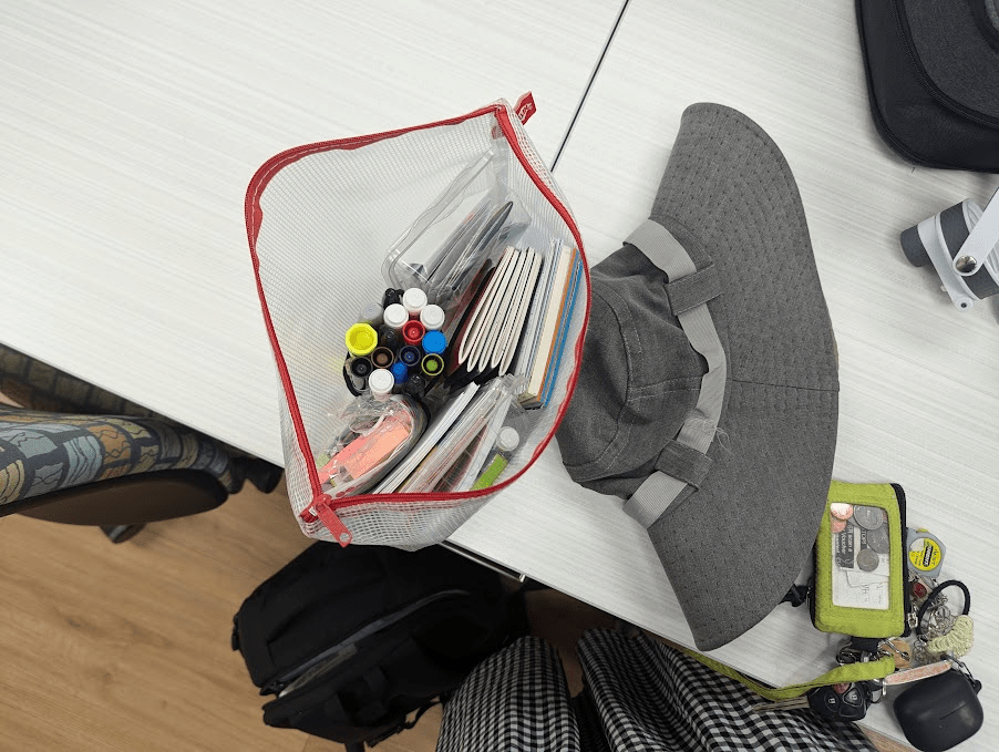 My third year in practicing ethnographic observation has been expanded with new knowledge from what I see and travel. Thus, to document these new insights, I am crafting/finding a system for keeping the observational notebooks, pens, visual toolkits, books, and so on. However, this process has been quite challenging because the material list often expands when going on field trips in reality, including personal belongings: hat, medicated oils, snacks, phone charger, key holders, medications, and sometimes feminine products. More materials are added when I am not sure if the ethnographic observation might need them, so the “hoarding” phenomenon often takes place to prepare for the unpreparedness in the field trips.