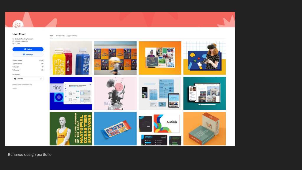 This is my portfolio page, after I graduate from undergrad. I would like to share with you just because in terms of technical skills, you can focus on mastering it whenever you have the contents of you want to design. It’s not necessarily based on a project from design class. Usually, after a class, especially when you are just freshmen and sophomore, you will advance your sense of aesthetics and your technical skills as you grow. You then will revisit the projects and will even redesign the class projects.