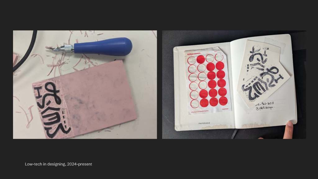 Here’s the very clear example of where the hands have touched and the hands have used. This is one of the emphasis that I want to point of what is directly from hand – (the design objects are) physical and distortable. Then, they can be understood as the expansive understanding of digital design technology, which is low-tech. But we’ll go through that another time.