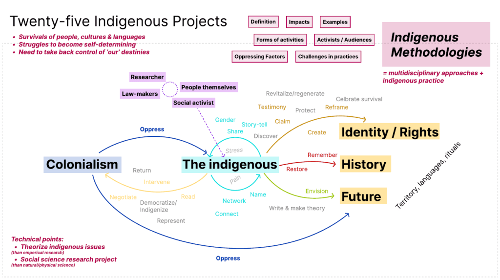 The world has been unveiled differently, even though it was the same place that I passed by to go to school almost every day. The pure joy with my colleagues was no longer that passionately there, as I was aware of the colonial history of the place that I stepped in. Even a beautiful coffee house in the university areas made me wonder if there was a link to the Indigenous people, working class, and immigrants. Through my professors’ support, I built the ability to read the history of the space, through paralleling theories, what I read, and observed. The overload of emotions was quite terrifying to bear, because it contrasts with the immersive, modern aesthetics surrounding me and the communal senses that I am supported with every day. It contrasted with the naive consciousness in my past self. It finally aligned with what I read but did not understand in “Twenty-five Indigenous Projects” (Tuhiwai Smith, 2012).